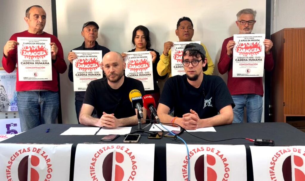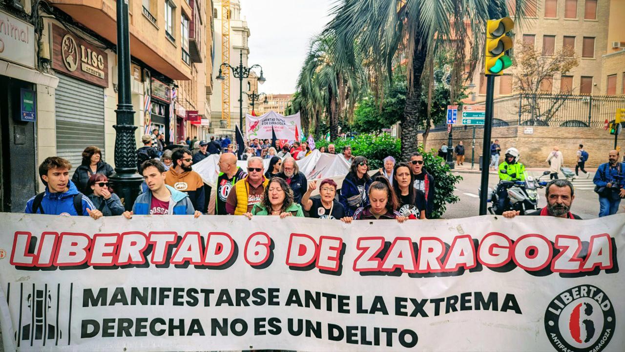 La convocatoria busca reactivar la presión social y exigir “la inmediata puesta en libertad de los 6 de Zaragoza”, junto a otras reivindicaciones: la derogación de la Ley Mordaza, una reforma no punitiva del Código Penal y el fin de las infiltraciones policiales en colectivos sociales.