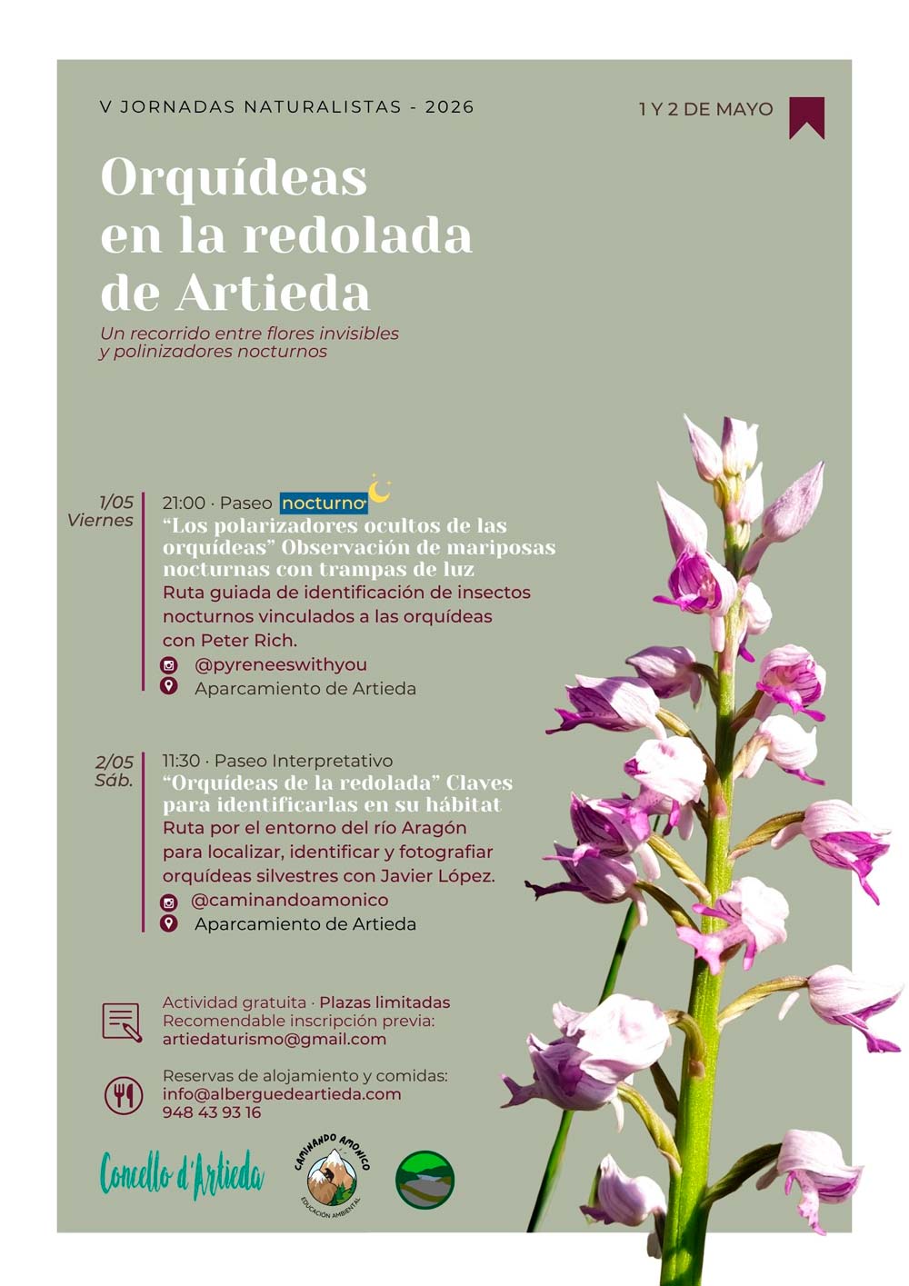 Artieda celebrará los próximos 1 y 2 de mayo una nueva edición de sus Jornadas Naturalistas dedicadas a las orquídeas silvestres, una propuesta gratuita y abierta a todos los públicos que invita a descubrir, desde una mirada cercana y respetuosa, la riqueza natural del entorno. Bajo el título “Orquídeas en la redolada de Artieda”, la iniciativa combina divulgación y experiencia directa en la naturaleza, consolidándose como una cita primaveral para quienes sienten curiosidad por la biodiversidad del Prepirineo.